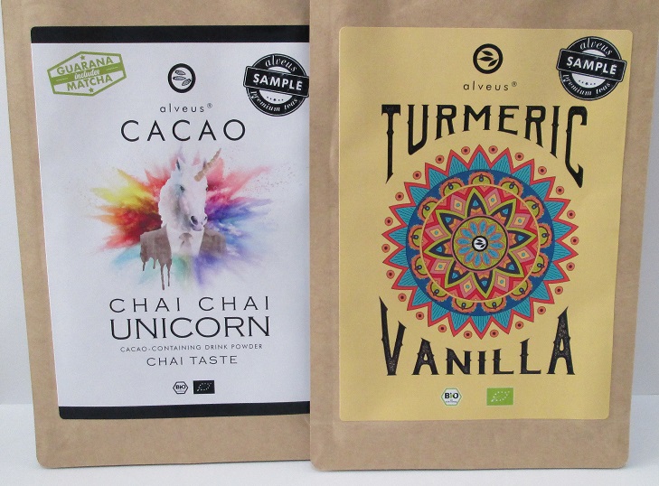 "Chai Chai Unicorn", todavía no lo hemos probado... Es una bebida en polvo que contiene cacao, pero a la vez, contiene guaraná, jengibre, canela molido, cardamomo, té verde matcha, clavo molido, raíz de maca, entre otros. Por lo que, debe ser un sabor bastante curioso..., no sé..., jejeje. En cuanto me anime con él, ya os contaré que tal es.